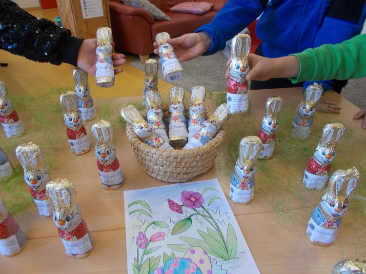 Auch dieses Jahr freuen sich die Kinder wieder über eine Spende vom Lions Club, jedes Kind bekommt einen Schokohasen.